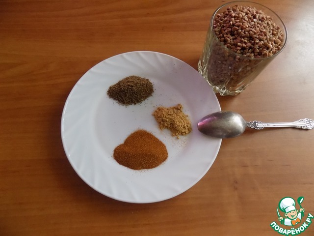 - Крупа гречневая (ёмкостью 250 мл) — 1 стак.