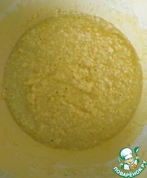 Добавляем к яйцам сахар! взбиваем! Затем добавляем стружку, манку и вымешиваем венчиком. Даём постоять 10 минут!