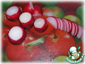 Нарезать промытый редис полукольцами.