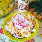 салатик нам очень понравился,нежный,сытный,весенний.Муж даже удивился,почему получилось ОЧЕНЬ вкусно