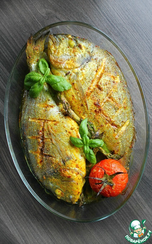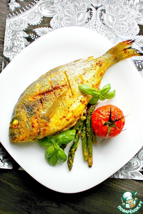 Рецепт «Дорада "Золотая рыбка" с творожной начинкой»: