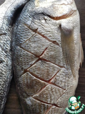 На рыбе с двух сторон сделать надрезы крест на крест.