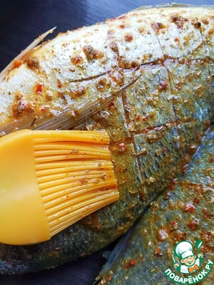 Смазать с двух сторон силиконовой кисточкой маринадом из специй.