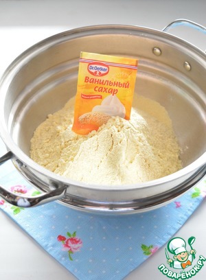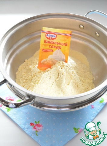 В миску просейте оба вида муки, добавьте соль, и ванильный сахар Dr. Oetker