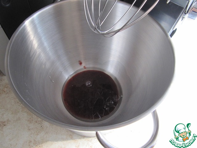 Готовый сироп влить тонкой струйкой во взбитый с белком джем, стараясь не попадать на лопасти миксера.