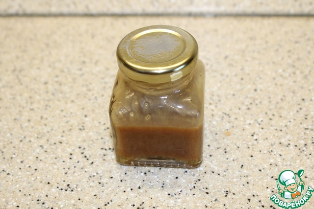 В начале приготовим заправку, в небольшой емкости смешаем оливковое масло, горчицу, мед, сухое красное вино (можно заменить соком из красного винограда), бальзамик, пару щепоток соли. Баночку хорошо встряхнем несколько раз и попробуем на вкус, чтобы при необходимости "подстроить под себя".