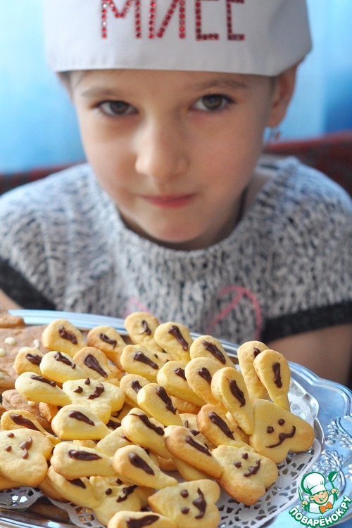 Сам по себе рецепт прост, но такой формовки и исполнения на сайте не видела. Кроме того, приготовление такого печенья очень понравится детям, я сегодня проводила мастер-класс по его выпечке с соседкой Лизой, ей 6 лет.