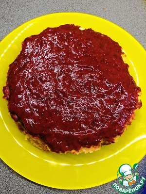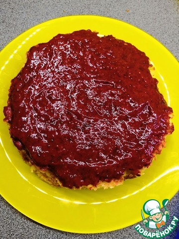 Добавляем к тесту, выливаем в форму 18см, и в духовку на 30 минут при 170 градусах.
