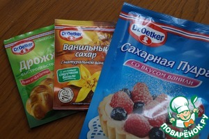 Для приготовления кулича по - Царски будем использовать сухие дрожжи, ванильный сахар и сахарную пудру со вкусом ванили от Dr.Oetker