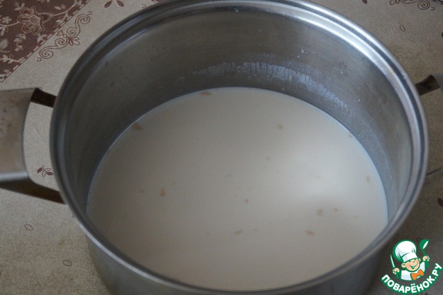 В теплом молоке разводим пакетик дрожжей и 50 грамм сахара