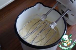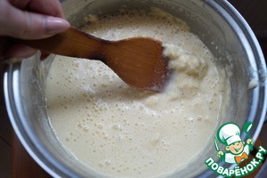 К опаре добавляем взбитые с сахаром яйца и сливочное масло тщательно перемешиваем.