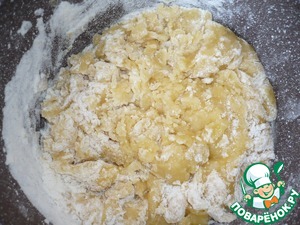 Растопите сливочное масло, добавьте сахар и куриное яйцо, все хорошо перемешайте.