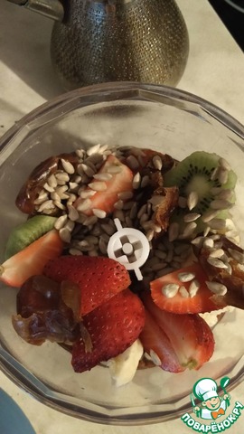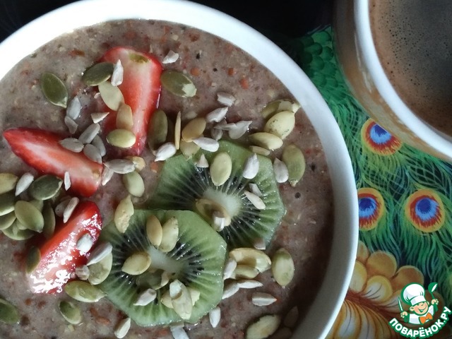 Вкусный и полезный завтрак готов! Переложить в пиалу, декорировав кусочками фруктов и семечками.