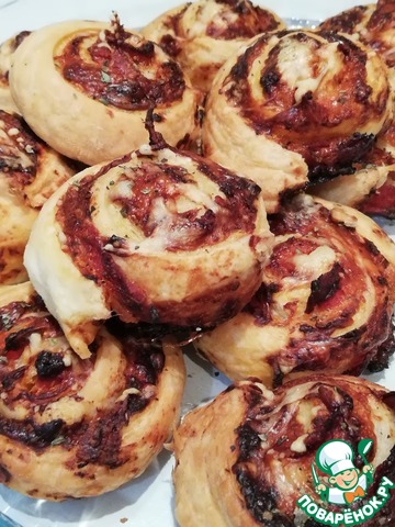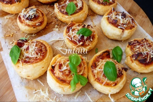 Предлагаю приготовить улитки из слоеного теста (мини пиццы). Идеальная закуска для перекуса и вечеринки. Вам потребуется всего несколько минут, вы и ваши гости получат огромное удовольствие.