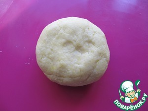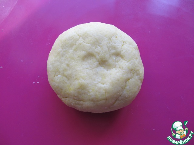 Тесто выложить на рабочий стол, размять в лепешку, завернуть в пищевую пленку, отправить на 30-40 минут в холодильник, тесто достаточно слегка охладить.