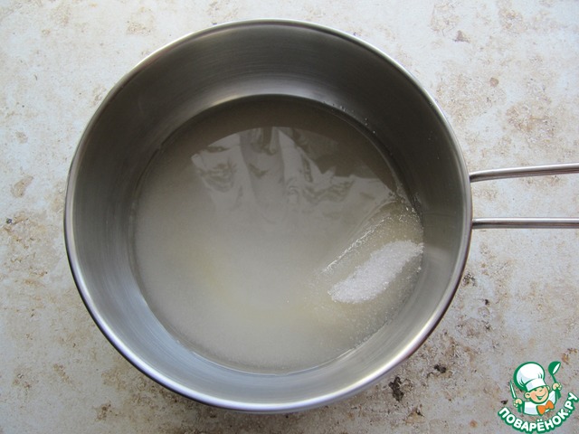Для приготовления белкового заварного крема горячую воду налить в чистую кастрюлю, затем в нее всыпать сахар, начать подогрев. Сироп можно мешать только до начала кипения! Как только температура сиропа достигнет 110 С - добавить лимонную кислоту, затем продолжить уваривать сироп до температуры 118-120 С (или до пробы на мягкий шарик), мерить температуру сиропа нужно не касаясь дна и стенок посуду!