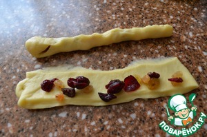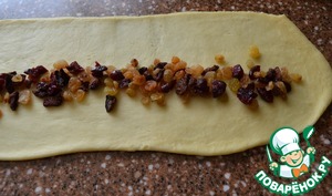 5-7 мм. толщиной, выложить начинку, свернуть рулетом. -
