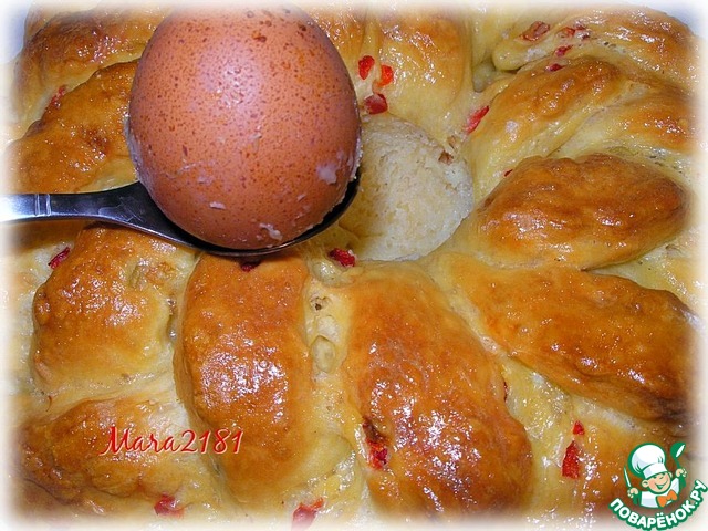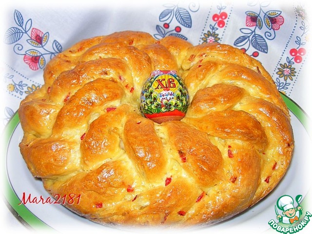 После того как каравай остынет, в центр установить красивое Пасхальное яйцо!