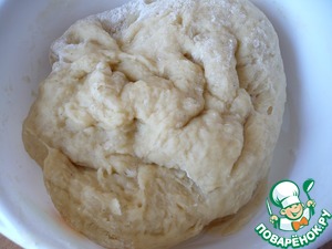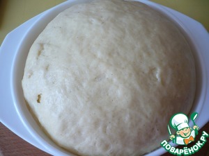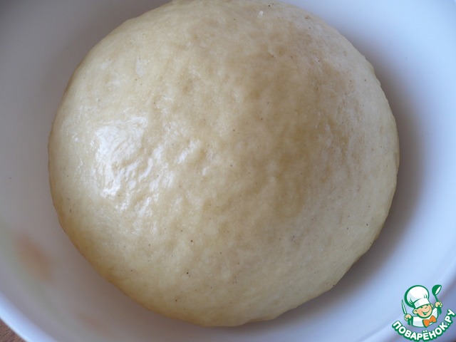 Тесто подходило 40 минут. Сделать тесту первую обминку и снова поставить в теплое место подходить. Тесто подходило 30 минут, тесту сделать вторую обминку и поставить тесто подходить еще на 20 минут.