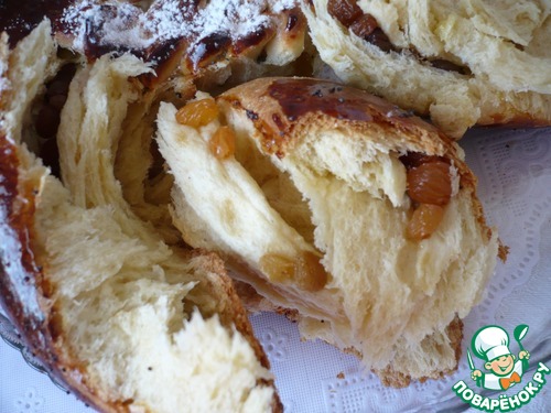 Предлагаю вам не ограничиваться пасхальными куличами и приготовить сладкий калач с изюмом. Традиционно калач – это русский пирог, который выпекали только по случаю самых важных событий. Подойдет такой калач и для пасхального обеда.