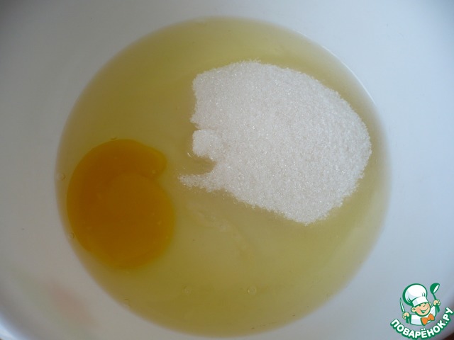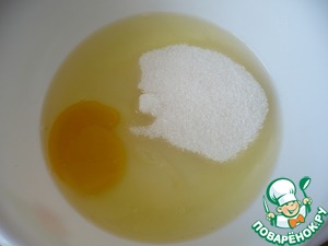 Теперь приготовим сдобу. В миске смешиваем одно яйцо и яичный белок (желток оставить для смазки), добавить остальной сахар, соль. Все перемешать.
