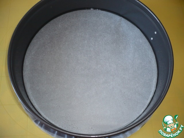 Для приготовления калача берем разъемную форму диаметром 23 см, дно застелить пергаментом и смазать растительным маслом.