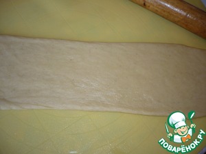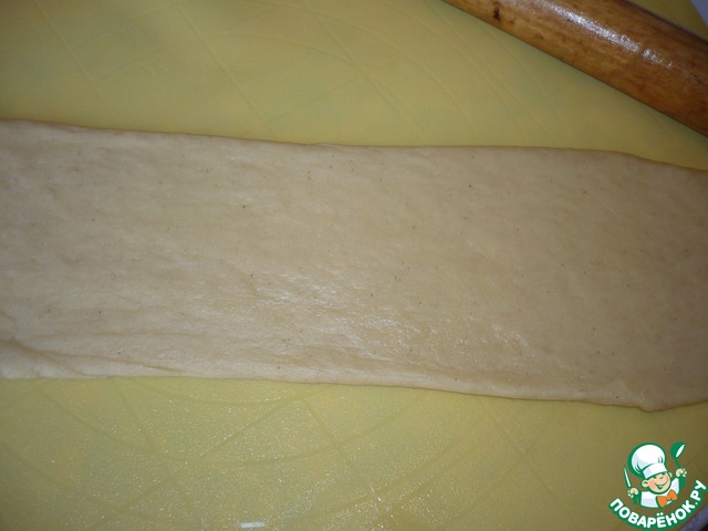 Закручиваем плотненько рулетик. Затем немного раскатать жгутик и отложить в сторону, чтобы тесто подошло.