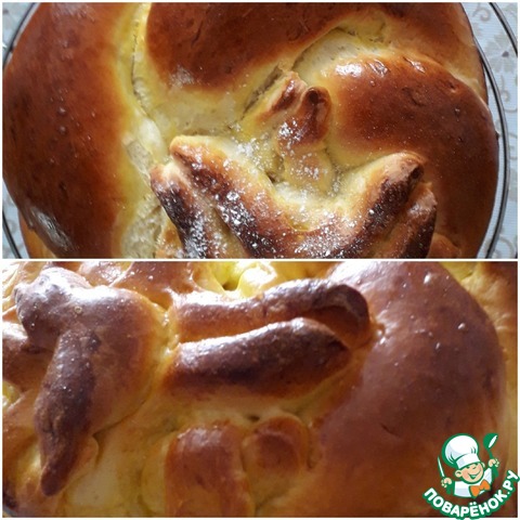 Дать постоять калачу еще 10 минут и отправляем в духовку на 40 минут при температуре 180 градусов. Ориентируйтесь на свою технику, т. к. все духовки пекут по разному. -