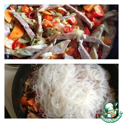Рецепт «Фунчоза со свининой «Красный дракон»»: