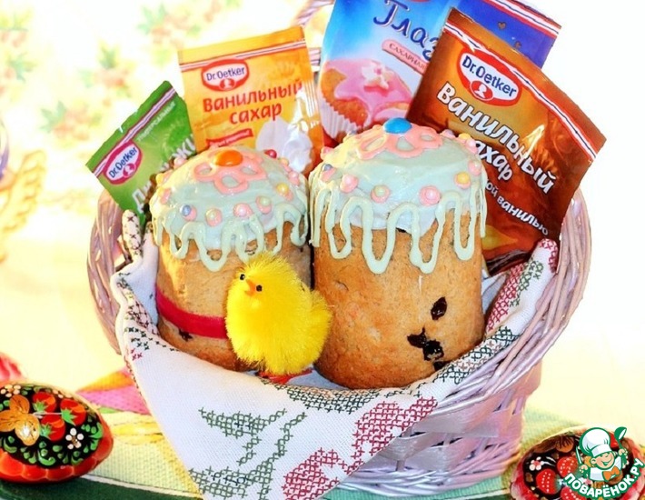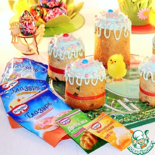 14. Для смазывания верха куличей можно взять сахарную глазурь Dr. Oetker и приготовить согласно инструкции на упаковке. Готовить глазурь очень просто и быстро.
