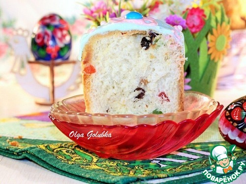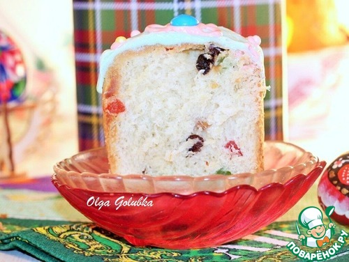 Кулич по этому рецепту получается очень вкусным и мягким и, как пишут, долго не черствеет. Я, конечно, придержу 1 куличик, а там уж как пойдет. В этом рецепте интересная глазурь на сгущенке. Все ингредиенты для глазури смешиваются и ничего не нужно взбивать и варить. После высыхания глазурь получается глянцевой, не липнет и не крошится при нарезке.