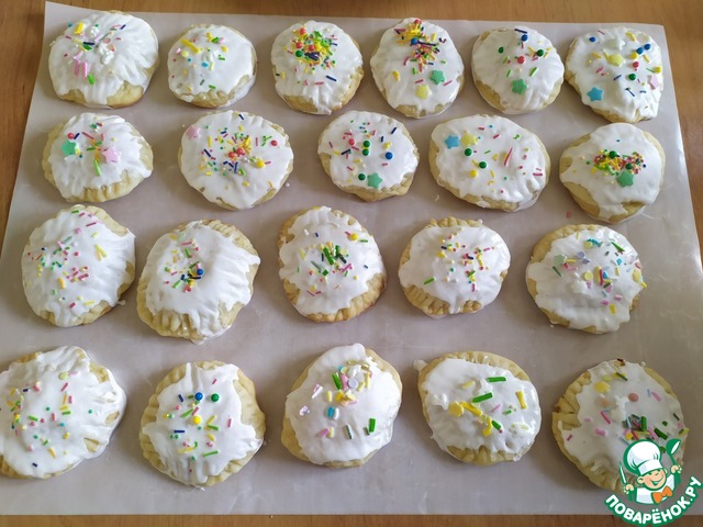 Покрываем печенье глазурью и посыпаем сверху кондитерскими посыпками, у меня ТМ Dr.Oetker.