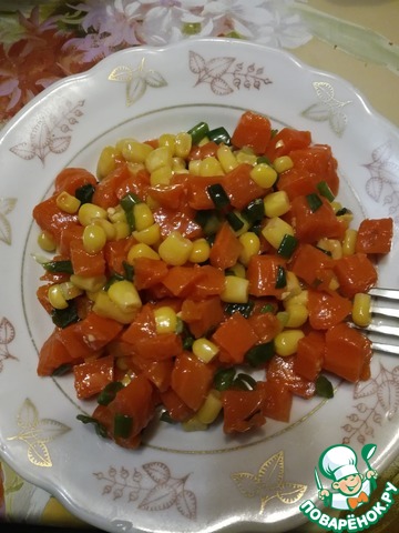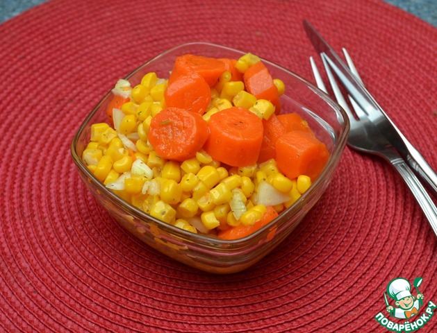 Как раз в нём есть всё что я люблю-морковь, кукуруза, лук, и, главное, нет майонеза!