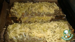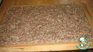 Пекарскую бумагу смажьте маслом и разложите на неё фарш, пласт должен получиться толщиной 1 см