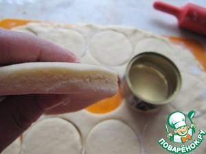 Раскатать тесто на слегка припыленном мукой силиконовом коврике до толщины 2-3 см, вырезать вырубкой кружочки из теста. (Если тесто при раскатывании будет прилипать - добавить муки, но не забивать, чтобы пышки не были сухими и жесткими!). Холодные лепешки лучше поднимаются в горячей духовке и требуется меньше муки при раскатке теста для подпыления коврика.
