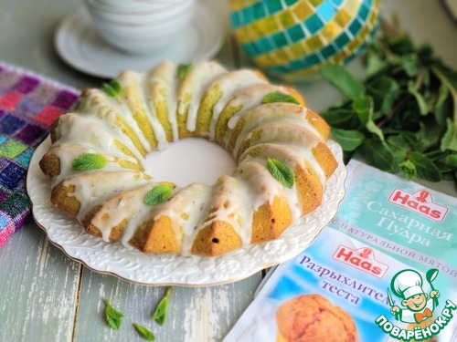 Для глазури просеять сахарную пудру с натуральной мятой ТМ Haas и отжать частями (чтобы глазурь не вышла слишком жидкой) сок оставшейся половинки лайма. Тщательно растирать ложкой, как только масса станет однородной, непрозрачно белой и блестящей глазурь готова. Поливаем ей остывший кекс.