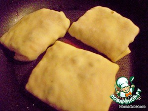 Затем раскатать в кружки величиной с блюдце, выложить начинку и защипать конвертиками, обжарить до образования поджаристой корочки.