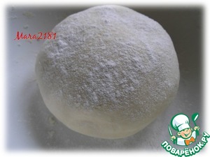 Вот такое белоснежное эластичное тесто у меня получилось. Присыпать его мукой и дать ему отдохнуть около 30 минут в тёплом месте, предварительно накрыв полотенцем.