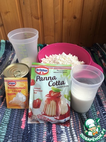 Творог смешиваем со сгущенным молоком и ванильным сахаром от Dr. Oetker.