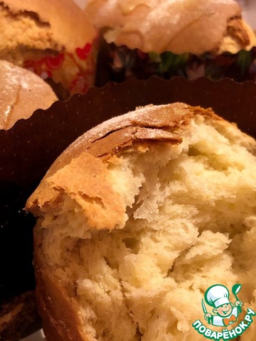 Готовые куличи остужаем на боку, на подушке, предварительно вынув их из банок, и периодически переворачиваем, чтобы они не отлежали бочки.