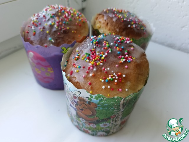 Полностью охлажденные куличи покрываем глазурью от Dr. Oetker и украшаем посыпками.