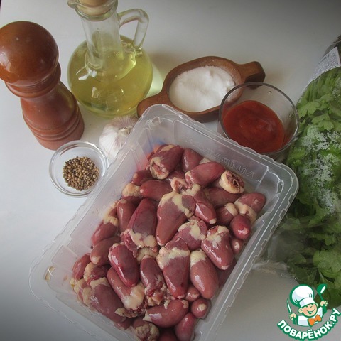 Ингредиенты для «Куриные сердечки в красном соусе»: