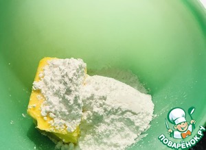 В миску, в которой можно взбивать ручным миксером, положить мягкое сливочное масло и просеянную сахарную пудру. -