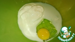 В глубокой миске хорошо перемешиваем сметану, молоко и яйцо.