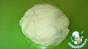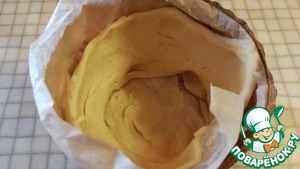 Добавить просеянную муку и замесить тесто. Муки может уйти чуть больше или меньше. Заварачиваем тесто в пищевую плёнку и убираем в холодильник на 30-40 минут.