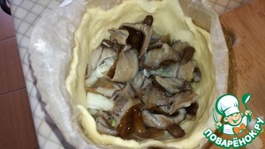 Аккуратно помещаем в нашу форму, быстро слепить края с дном. И сразу начинать фаршировать слоями. Если тесто у Вас немного сползает по стенкам ничего страшного, оно хорошо тянется и его можно натягивать после каждого слоя.