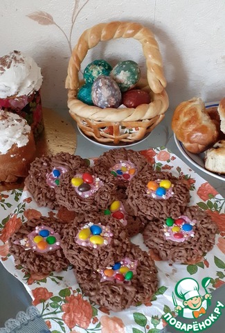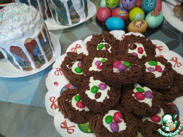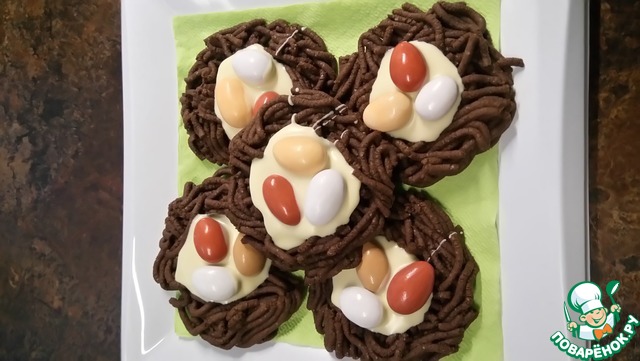 Рецепт «Пасхальное шоколадное печенье "Птичьи гнездышки"»: