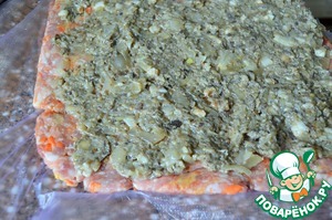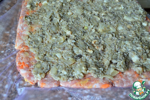 Фарш выложить в пищевой полиэтиленовый пакет, 30*40 см.,