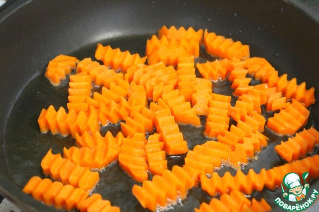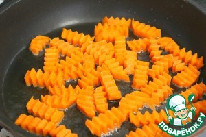 Слегка обжарить морковь на разогретой сковороде с растительным маслом. -