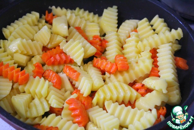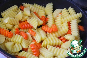 Добавить нарезанный картофель. Жарить минут 15 (ориентируйтесь на свой сорт картофеля).